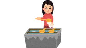 チャンスは突然やってきました。ある日友人と御朱印巡りをしているときです。手水舎の前で使い方が分からない風の外国人旅行客がいました。手に持ったり戻したり、どうも柄杓の使い方がわからない様子。